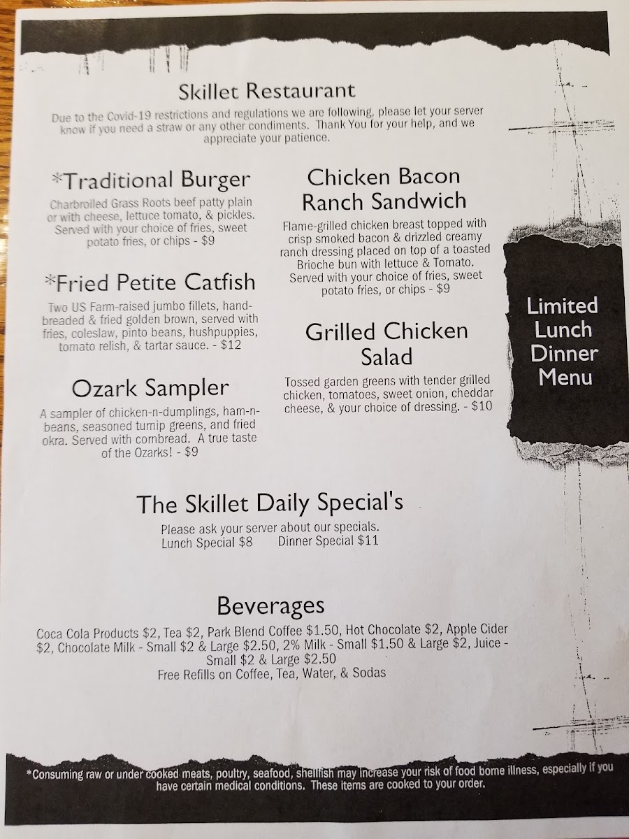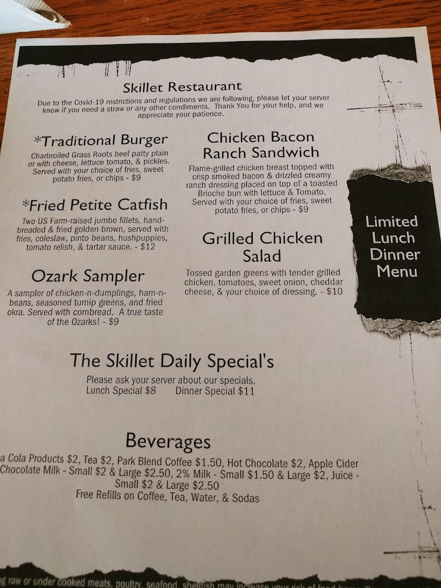 You'll find a mix of traditional favorites and regional specialties that reflect the local character, including house-made ranch dressings, the Ozark Sampler Platter, and an array of satisfying sandwiches like the Patty Melt or the Ozark Bacon Burger. Meals here pair well with simple, refreshing drinks such as rosemary lemonade or classic sweet tea, inviting you to unwind as you enjoy the moments around you.